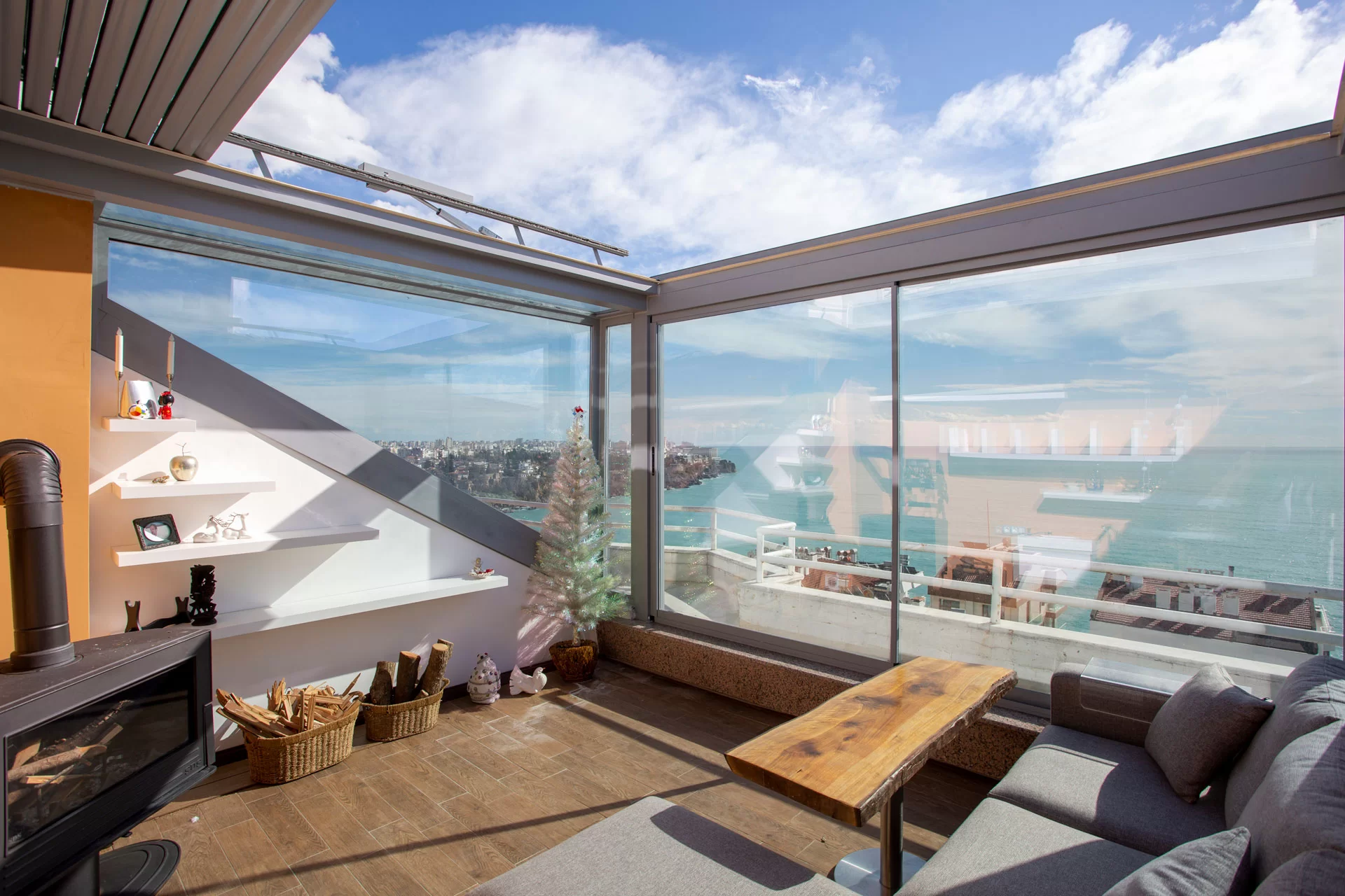 Faltbare Glasdachlösung mit 4+12+4 Komfort-Isolierglastechnologie.